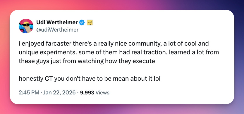 After DWR, its founder, shared that the protocol is being acquired by Neynar (an infra provider), Crypto Twitter was quick to condemn it, competing for the most deranged takes on a product they’d never bothered to try, completely neglecting that this acquisition might actually be a net positive.